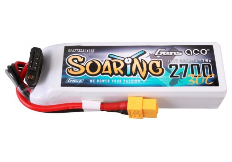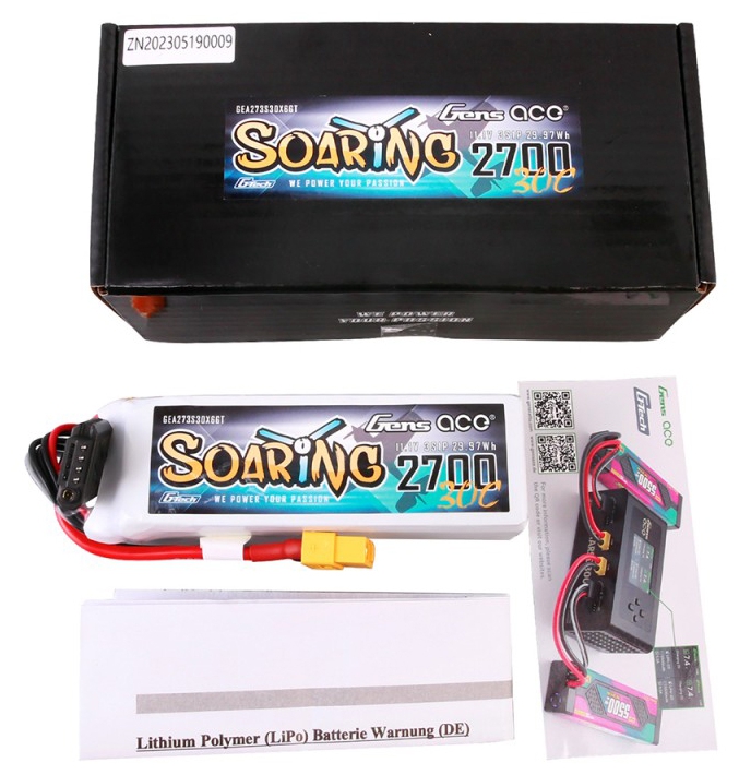 Gens ace G-Tech Soaring 2700mAh 11.1V 30C 3S1P LiPo Battery Pack originally designed and produced for DJI Phantom 1, with upgraded capacity, extend the flight time in the sky, it can be also use in small size of RC aircraft and RC heli, similar to 2200mah 3s but with 500mah more capacity, can also be fit in some RC crawler as well.