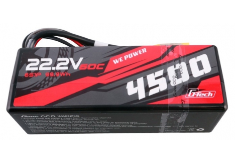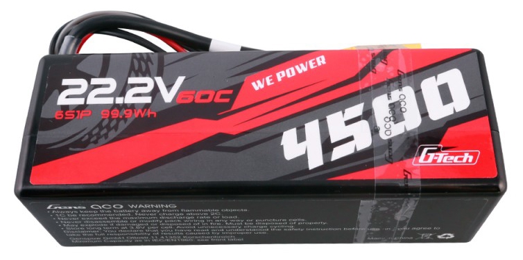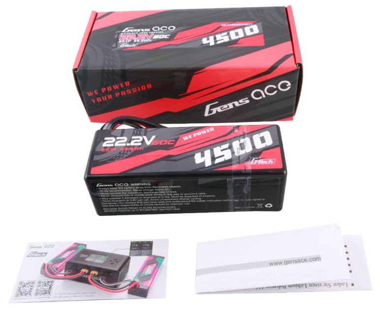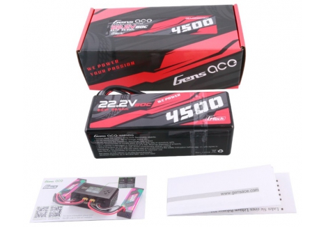 Gens ace G-Tech 4500mAh 6S1P 22.2V 60C HardCase RC car Lipo Battery this battery with high quality and high discharge rate, max continuous discharge is 60C; Gens ace 4500mah 6S 60C Lipo battery is suited to 1/8 & 1/10 RC car models such as Traxxas Slash, Emaxx, Bandit, Rustler version, HPI Strada XB 1/10 RTR Electric Buggy, Kyosho GP 4WD RACING TRUCK, Team Associated SC8, etc.