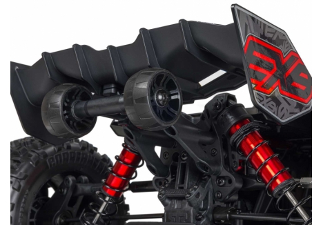 The ARRMA KRATON EXB with 5687 1100Kv motor and 160A Smart ESC – C-ARA5808V2T1 is equipped with a massive 56mm diameter motor that delivers 10% more torque than its predecessor. Paired with the updated Spektrum Firma 160A V2 ESC, the system provides smoother throttle response, better punch, and real-time telemetry. The ESC is waterproof and features Smart technology, allowing drivers to monitor motor RPM, ESC temperature, and battery voltage via the Spektrum Dashboard app. This combination unleashes brutal acceleration and sustained high-speed performance on 8S LiPo power.