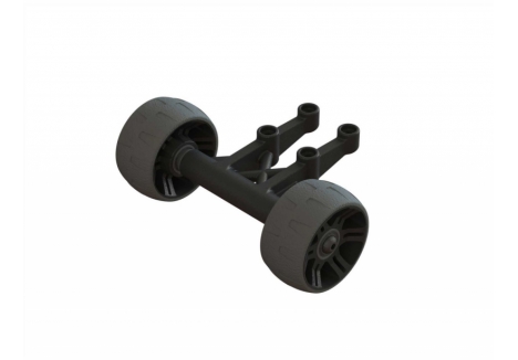 The ARRMA 1/5 scale black stunt truck with Smart telemetry and steel drivetrain – C-ARA5810V2T1 rides on oversized dBoots Back-Flip BB tyres designed for all-terrain traction and stunt execution. Their aggressive tread pattern grips loose surfaces while maintaining stability on hard-packed ground. Mounted on multi-spoke wheels with durable hubs, these tyres absorb shock and resist wear. Combined with oil-filled shocks and steel turnbuckles, they enable the ARRMA OUTCAST EXB to blast through dirt, grass, and gravel while executing flips, wheelies, and jumps with precision.