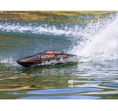 Its V-hull design knifes cleanly through the water for a smooth ride even in rough conditions. The included brushless power system features the Spektrum 2300Kv Brushless Outrunner Marine Motor paired with a 100A Spektrum Brushless ESC. Together, they can produce 35+ mph of wake-inducing action.