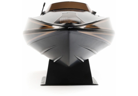 Its V-hull design knifes cleanly through the water for a smooth ride even in rough conditions. The included brushless power system features the Spektrum 2300Kv Brushless Outrunner Marine Motor paired with a 100A Spektrum Brushless ESC. Together, they can produce 35+ mph of wake-inducing action.