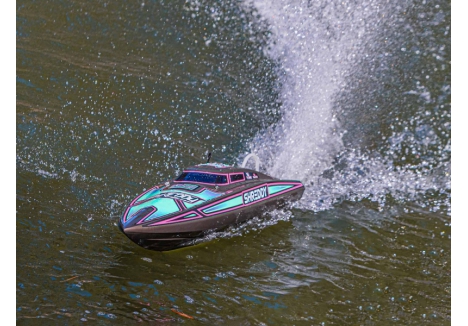 The Recoil 2 V2 also features a strikingly finished, high-impact ABS moulded hull and canopy with aluminium thumb screw canopy locks, durable modular interior, and aluminium offset rudder and propeller strut. With its technological advances, ready-to-run simplicity, custom Heat Wave Visual or Shreddy liveries, and worry-free self-righting, the 26-inch Pro Boat Recoil 2 V2 deep-V makes it easier than ever to own the lake!