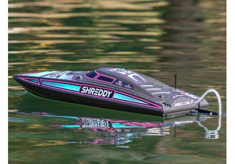 The Recoil 2 V2 also features a strikingly finished, high-impact ABS moulded hull and canopy with aluminium thumb screw canopy locks, durable modular interior, and aluminium offset rudder and propeller strut. With its technological advances, ready-to-run simplicity, custom Heat Wave Visual or Shreddy liveries, and worry-free self-righting, the 26-inch Pro Boat Recoil 2 V2 deep-V makes it easier than ever to own the lake!