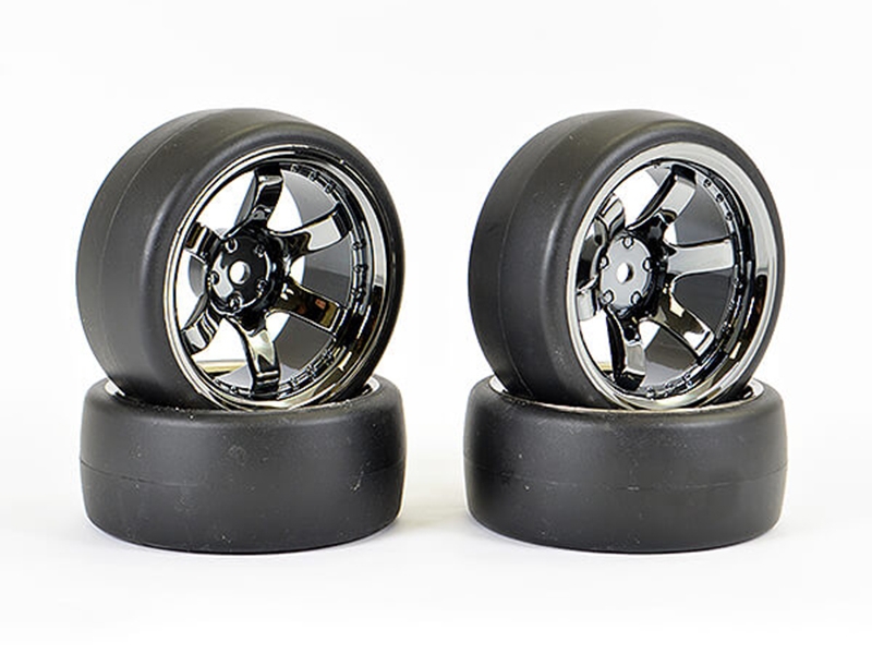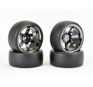 Fastrax 1/10 (4) Drift D1 Tyre W/9mm 6spoke Wheel Bk Chrome