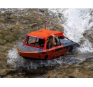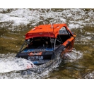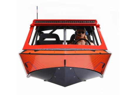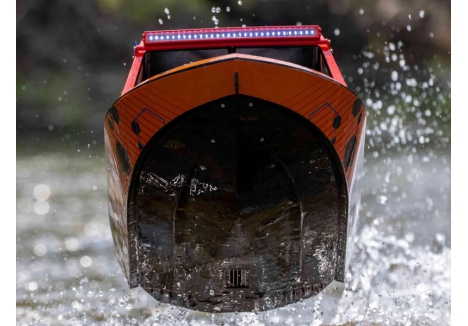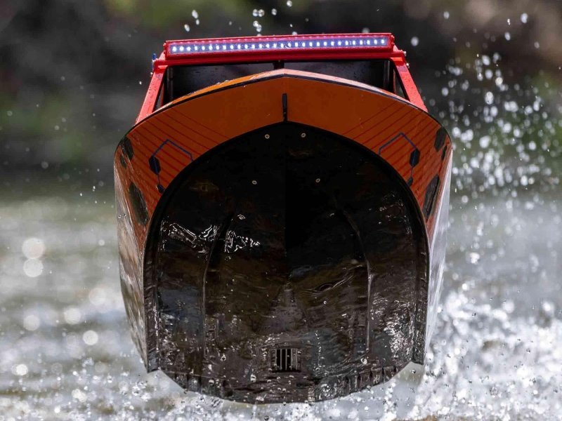 This 1/6 scale jet boat is the first RC model designed specifically for bashing. Its robust construction and powerful jet pump allow users to launch off wakes, skim across shallow water, and perform aggressive manoeuvres without compromising structural integrity. The rigid ABS hull is reinforced with an armour-plated underside, offering superior resistance to impact and abrasion. A replaceable aluminium wear ring protects the jet pump housing, ensuring long-term durability even in the harshest conditions. This black RC jet boat is engineered to thrive where others falter.