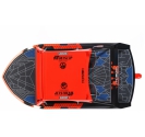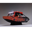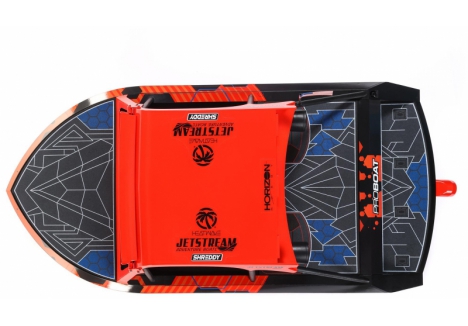The 1/6 scale boat with Mojo livery and cockpit detail showcases officially licensed graphics that replicate the high-impact style of full-size jet boats. The Mojo H2O livery features bold colours and custom designs that make the Jetstream visually striking on the water. Inside the cockpit, users will find detailed elements such as a steering wheel, deck material, and simulated speakers, all contributing to the boat’s realistic appearance. These design choices elevate the Jetstream beyond standard RC models, offering a premium aesthetic experience.