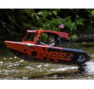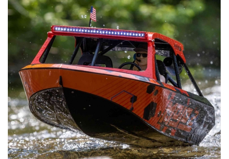 This RC boat for shallow water and stunt bashing is designed to operate in water as shallow as 2 inches, thanks to its jet propulsion system. This allows users to explore environments that are inaccessible to propeller-driven boats. Whether you're navigating narrow streams or launching off waves, the Jetstream offers the freedom to perform stunts and tricks with confidence. Its full-length stern ride plate and adjustable trim tabs further enhance stability and control during high-speed runs, making it one of the best RC jet boats for adventurous users.
