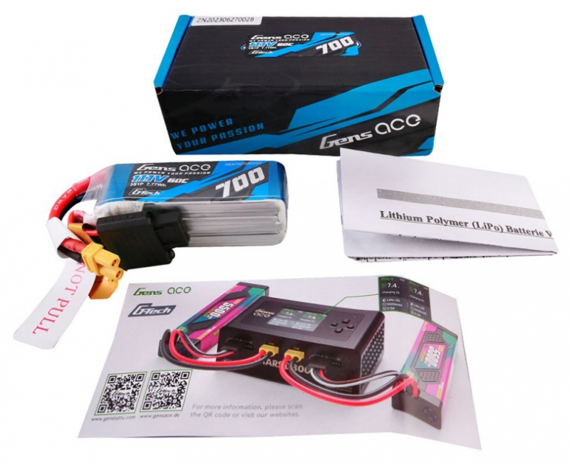 Gens ace G-Tech 700mAh 11.1V 60C 3S1P Lipo Battery Pack comes with strong body and very reasonable price. This battery is also very easy to balance. It's the high quality and reliable power you need.