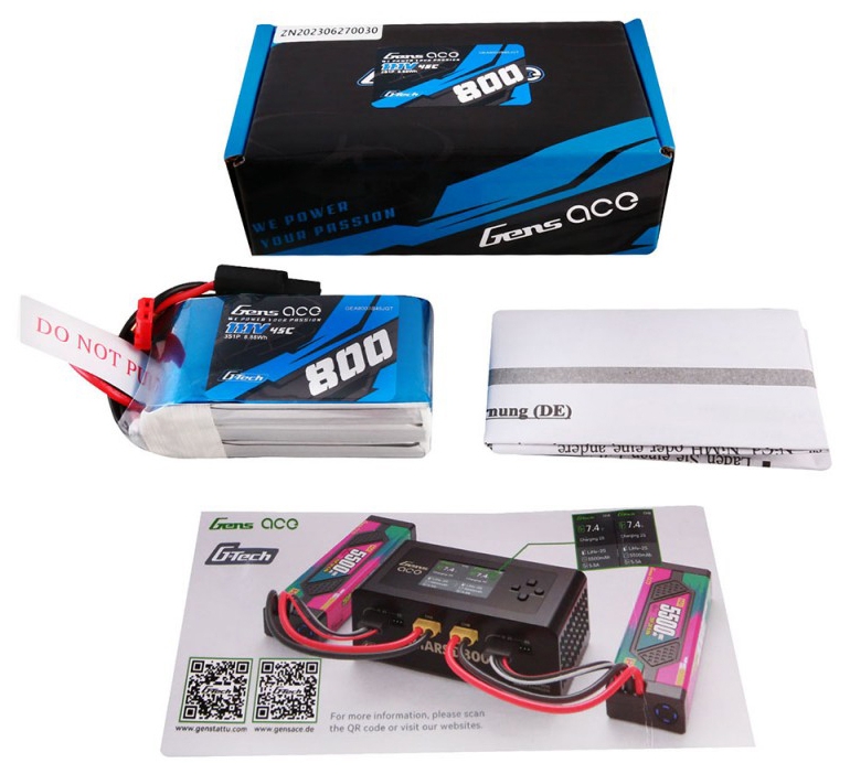 Gens Ace G-Tech 800mAh 11.1V 3S1P 45C Lipo Battery Specs:- Capacity: 800mAh