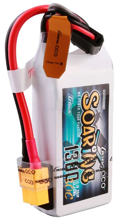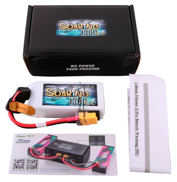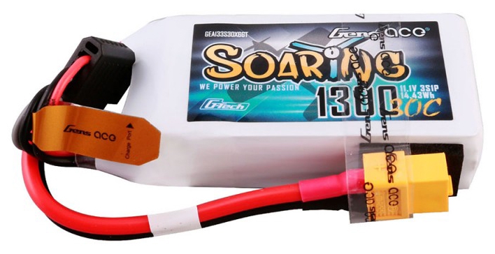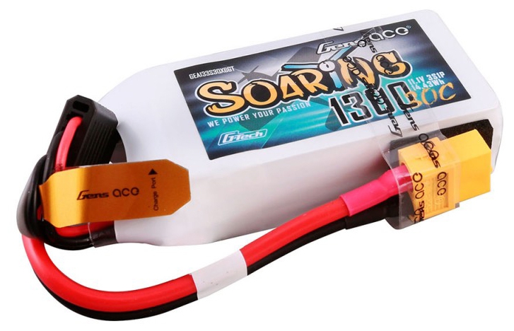 Gens ace G-Tech Soaring 1300mAh 11.1V 30C 3S1P Lipo Battery Pack provides you high quality and reliable power for your radio controlled airplanes. It uses stable automatic stacking technology to enable a single cell to reach the capacity of 1300mAh. Overall this is a great choice for your radio controlled hobby.