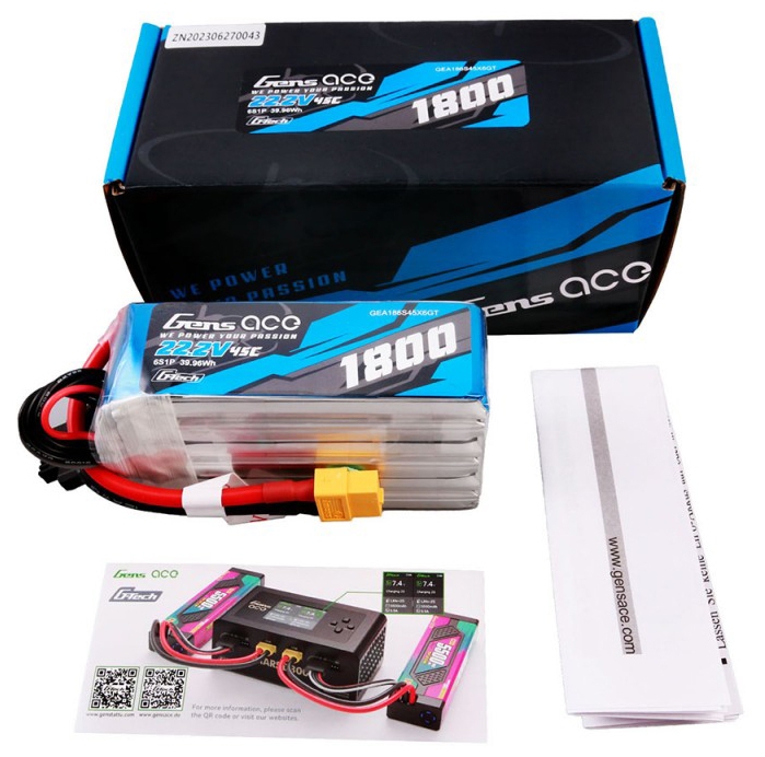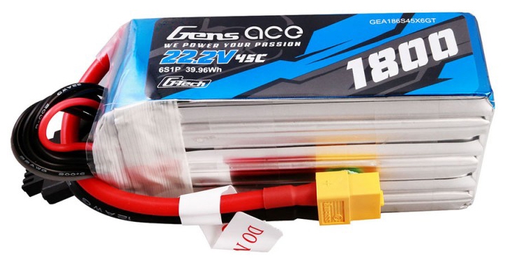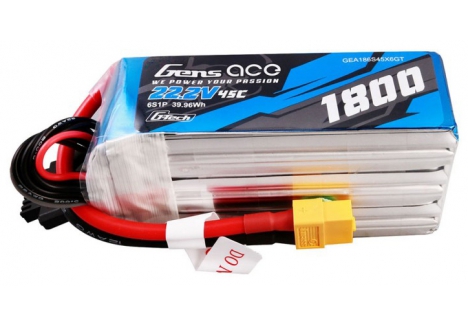 Gens ace G-Tech 1800mAh 6S 45C Lipo Battery Specs:Capacity: 1800mAhVoltage: 22.2V/6S