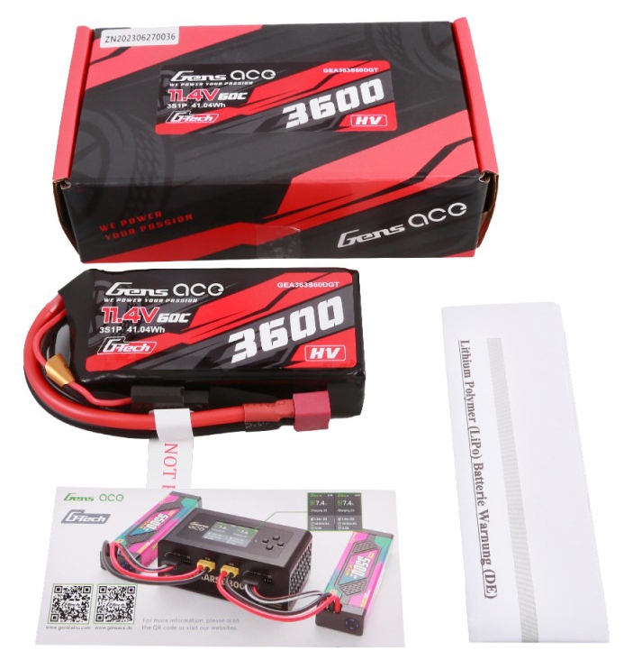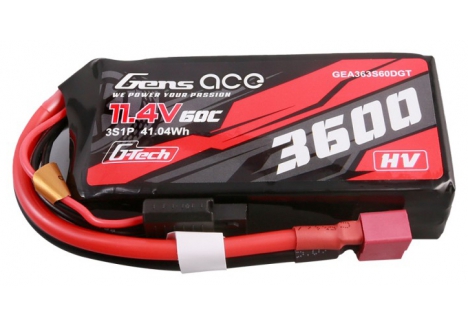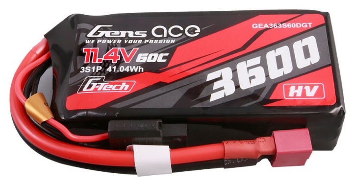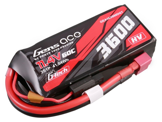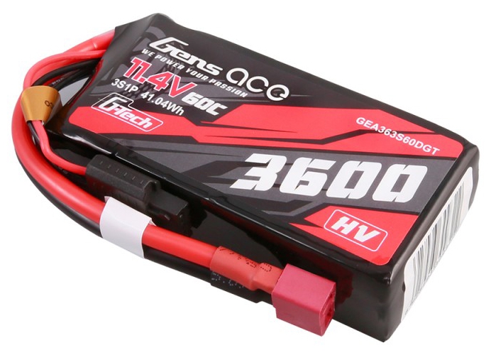 Gens ace G-Tech 3600mAh 11.4V 60C 3S1P Lipo Battery Pack with T-plug is suited for 1/10 scale rock crawler.