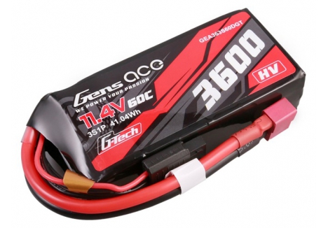 Gens ace G-Tech 3600mAh 11.4V 3S1P 60C High Voltage Lipo Battery Pack with T-plug