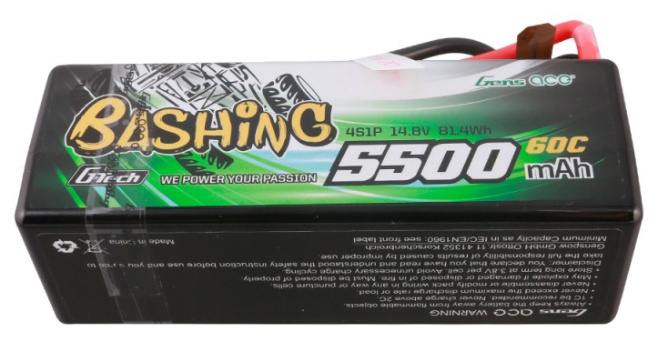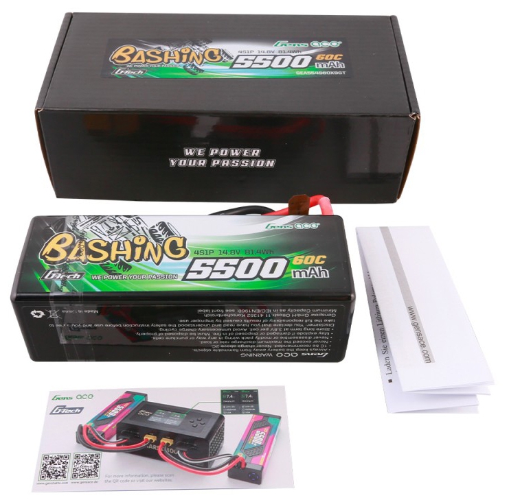 Gens ace G-Tech 5500mAh 4S1P 14.8V 60C HardCase RC car Lipo Battery LiPo battery hardcase offers you a very high power and very long run time for your RC cars. These batteries packs are made with superior Lithium Polymer raw materials from Japan and Korea. The advanced stacking technology enables a single cell of capacity to reach 5300mah. They are widely fit the 1/8 Car Model. The hardcase of this 5300mAh 14.8V LiPo battery provides your batteries with very solid protection. They are your ideal choice for the RC car hobby.