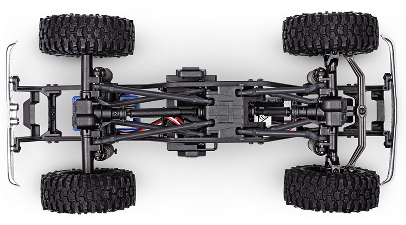 Extended Steel Ladder Frame TRX-4M High Trail Edition performs like a full-size crawler because it's built like one. A new extended rigid steel ladder frame runs from bumper to bumper to virtually eliminate flex. You'll feel the added stability of its longer wheelbase on steep climbs or while navigating technical terrain.