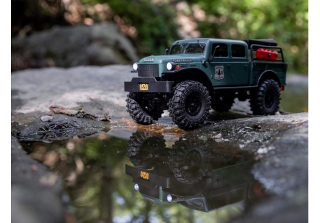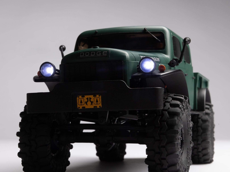 The AXIAL SCX24 Dodge Power Wagon C-AXI00007T2 is a 1/24 scale remote control rock crawler that combines vintage American truck styling with modern trail-ready engineering. Finished in green and built on the proven SCX24 platform, this mini RC truck is fully assembled and ready to run, offering a seamless entry into the world of scale crawling. The four-door molded ABS hard body replicates the rugged charm of the 1940s Dodge Power Wagon, while the integrated overlanding rack and accessories add a layer of realism that appeals to both collectors and performance enthusiasts. Whether you're navigating indoor terrain or tackling outdoor trails, the AXIAL SCX24 Dodge Power Wagon C-AXI00007T2 delivers a compelling mix of scale detail and off-road capability.