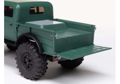 The detailed molded ABS hard body of the AXIAL SCX24 Dodge Power Wagon C-AXI00007T2 captures the essence of the original 1940s truck with precision. Its four-door configuration and green finish evoke a classic utilitarian aesthetic, while the optional overlanding rack and accessories enhance its visual authenticity. These elements make the crawler not just a performance machine but a scale model worthy of display. For enthusiasts who value realism as much as capability, this model offers both in equal measure.