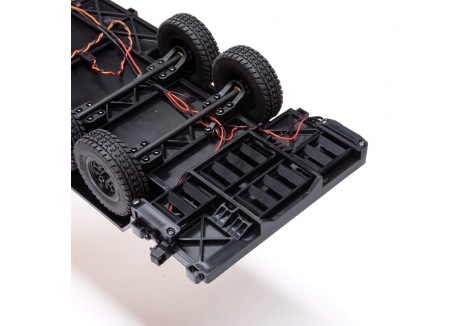 The SCX24 Trailer makes an eye-catching display piece when you're not using it to tow your rigs. The dual axle trailer is made of injection-moulded black composite with a diamond plate and wood textured finish. There are simulated "painted wood" panels down the center of the trailer. Prewired red LED running lights continue the realism onto the trail, indoors or outdoors, day or night, adding the authentic looks that RC crawling enthusiasts expect from Axial.