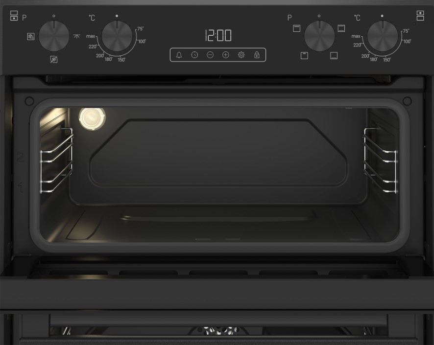 The fan-assisted main oven offers a generous 48-litre capacity, distributing heat evenly for consistently excellent results across all shelves. The top conventional oven includes a 38-litre cavity with a powerful full-width grill — ideal for everything from toasted sandwiches to sizzling Sunday breakfasts. The Blomberg ROTN9202DX double oven ensures you're ready to cook for any occasion, large or small.