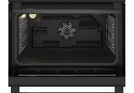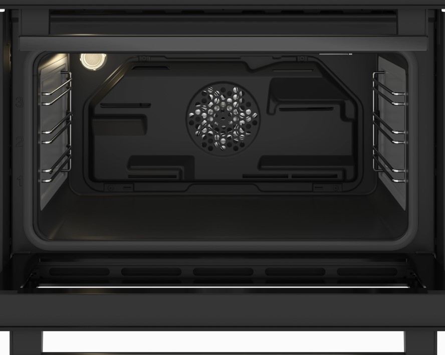 Inside, the ovens are equipped with durable black enamel interiors that resist stains and grease build-up. Removable side racks and removable door glass simplify the cleaning process, helping you maintain a spotless oven with less effort. The powerful cooling fan and CoolTouch door built?under oven design also ensure external surfaces stay safe and comfortable to the touch.