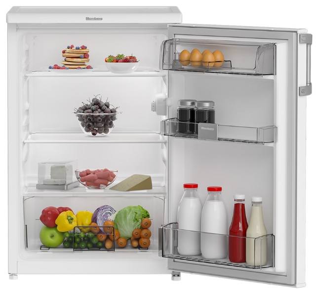 The Blomberg SSM1554P undercounter fridge offers smart cooling in a space-saving design, making it a versatile solution for compact kitchens or as a secondary food storage appliance. At just 54cm wide, this freestanding larder fridge provides 128 litres of fresh food storage while maintaining a neat and modern white exterior that complements most kitchen styles. Its efficient layout and practical features ensure everyday usability with minimal maintenance.