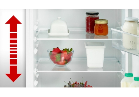 Whether your kitchen layout is left- or right-handed, the reversible door offers essential flexibility. This thoughtful design makes installation easy and allows the fridge to integrate seamlessly into a wide variety of spaces. With external handles and adjustable shelving, the unit ensures access is simple and the layout can evolve with your needs.