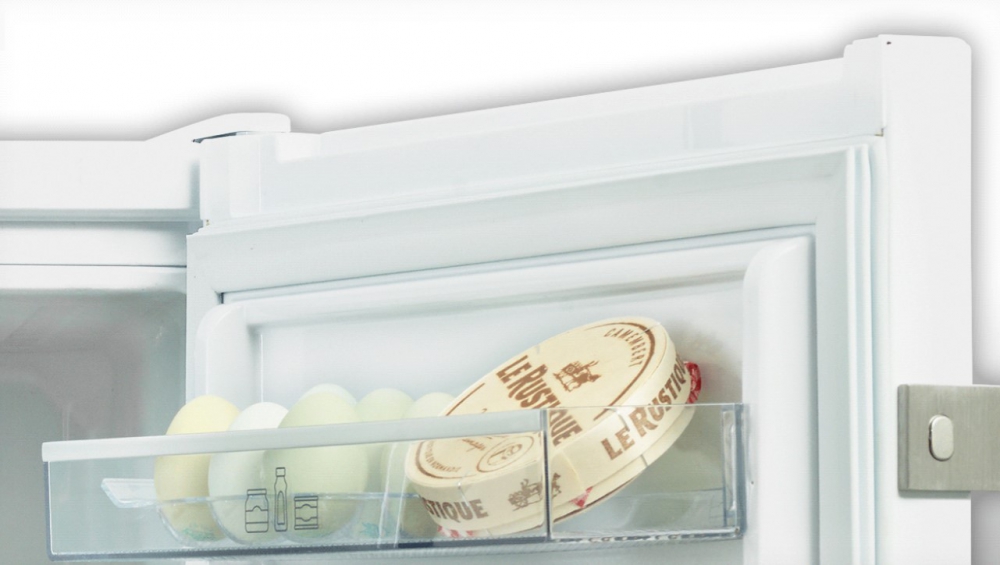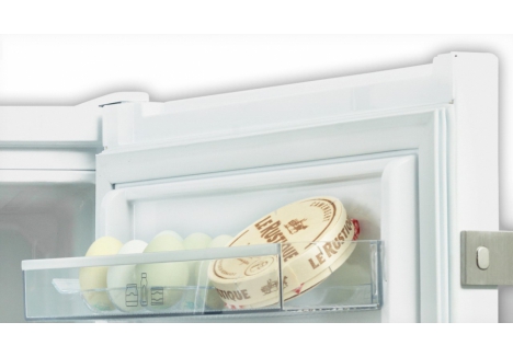 With a 128L capacity, this compact appliance offers ample room for the weekly essentials. The interior layout includes three door racks ideal for drinks and condiments, and a dedicated egg tray to help organise smaller items. Its auto defrost feature keeps the back wall clear of frost, helping your food stay fresher and your fridge running more efficiently without manual intervention. The result is a compact larder fridge for small kitchens that handles daily use with ease.