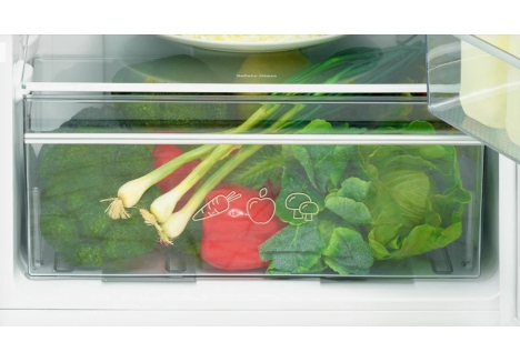 This blomberg 54cm undercounter larder fridge white is tailored for households where space matters but storage flexibility is a must. Adjustable glass shelves let you customise the internal layout to fit taller bottles or stacked containers with ease. The large salad crisper gives you plenty of space for fresh produce, while the chrome wire shelf above the crisper adds a stylish and practical touch to your storage options.