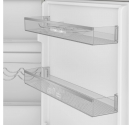 Storage in this blomberg integrated tall larder fridge has been thoughtfully designed. A dedicated chiller compartment maintains a temperature around 0°C, perfect for preserving the freshness of meat, fish, and dairy products. The generous salad crisper provides room for your vegetables and fruits, while a stylish chrome wire wine rack keeps your bottles safely stored and accessible. This setup ensures every item in your fridge has its place, contributing to a more organised and efficient kitchen environment.