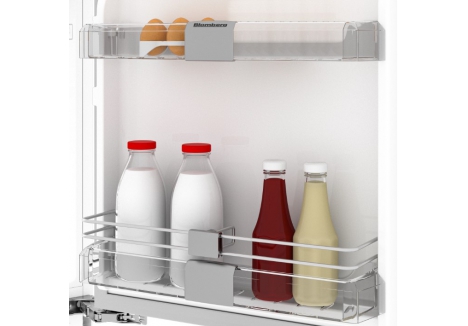 With its reversible door, the blomberg integrated larder fridge adapts easily to left or right-handed installations. Built-in safety features such as heavy-duty metal hinges ensure the door closes fully every time, preserving cool temperatures. The flame-retardant back meets UK and European safety standards, giving you extra peace of mind.