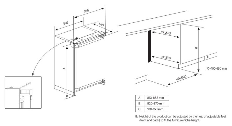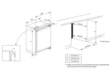 Operating at just 35 dB, the fridge runs almost silently in the background. Its energy efficient integrated larder fridge design means it maintains consistent performance while helping you reduce electricity usage. The appliance is climate class SN-T, making it capable of running smoothly in ambient temperatures between 10°C and 43°C.