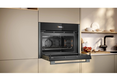 With a practical 45-litre capacity, the built?in Neff C24MR21G0B oven is perfectly suited for everyday cooking. From quick midweek dinners to impressive weekend roasts, it accommodates a wide variety of dishes. Whether you’re preparing meals for one or cooking for the whole family, the spacious cavity of this 28?L Neff combination oven gives you the flexibility to handle any menu — making it one of the best Neff compact oven microwave combination appliances for any kitchen.