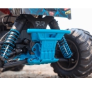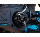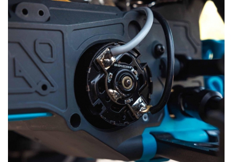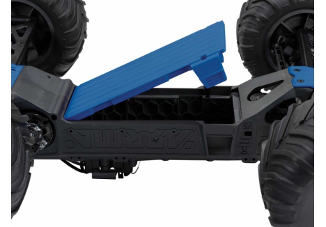 The backbone of the ARRMA GORGON MEGA 550 blue truck with dBoots Chevron MT tires and composite chassis is its impact-resistant composite chassis. Engineered with a spine-style layout, the chassis resists flexing and absorbs shocks while preventing dirt and debris accumulation. This clean design keeps the truck lightweight and agile, improving acceleration and handling. Integrated skid plates and bumpers protect the body and drivetrain during aggressive use, while the bottom-loading battery tray allows quick access without removing the shell. These features make the chassis ideal for high-energy bashing sessions across unpredictable terrain.