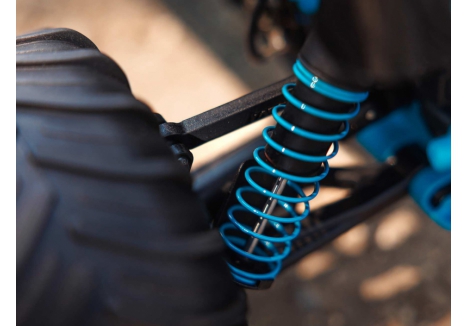 - Oil-filled coilover shocks - Absorbs terrain impacts and allows ride height adjustment