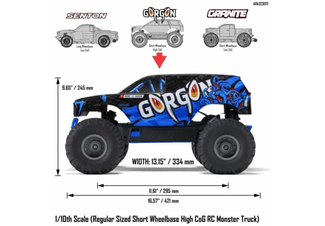 Technical Specifications of ARRMA C-ARA3230T1 GORGON MEGA 550 2WD monster truck blue