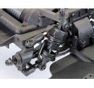 Oil filled shock absorbers, anti-roll bars and adjustable double wishbone suspension lets you tweak to suit your settings and tyre choice; either treaded rubber tyres for street racing, featuring 25mm wide front and 30mm wide rear for better stability at high speed or hard plastic boots on 6-spoke wheels for sideways drift driving.