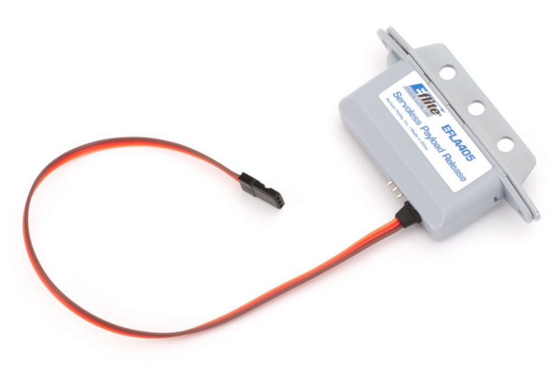 The E-flite servoless payload release enables you to drop a single payload while in flight, or enables you to use multiple devices to drop multiple payloads using only one channel on your receiver. It can also be used as a tow release for sailplanes.