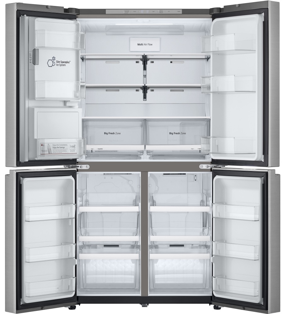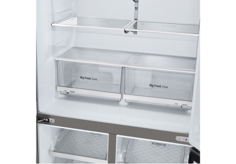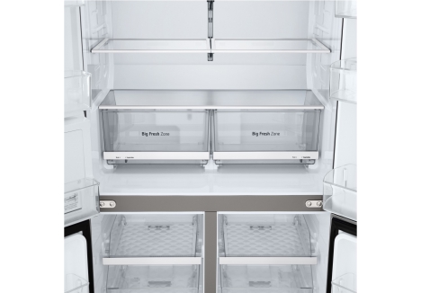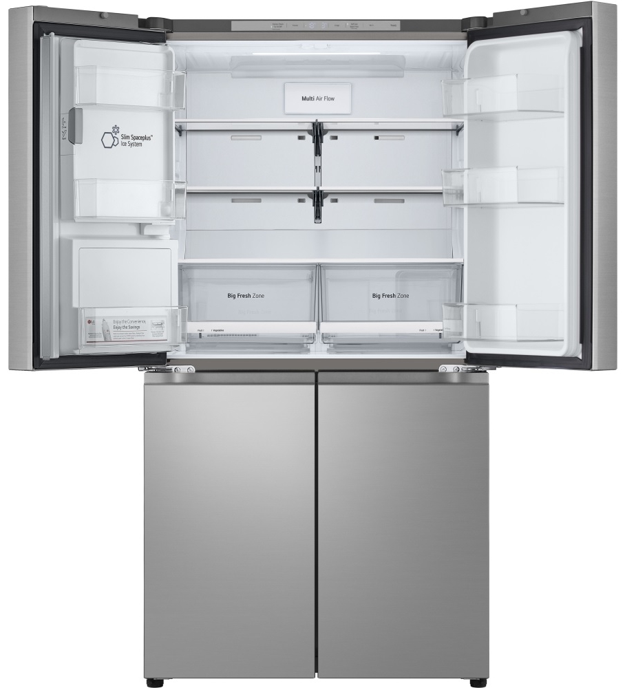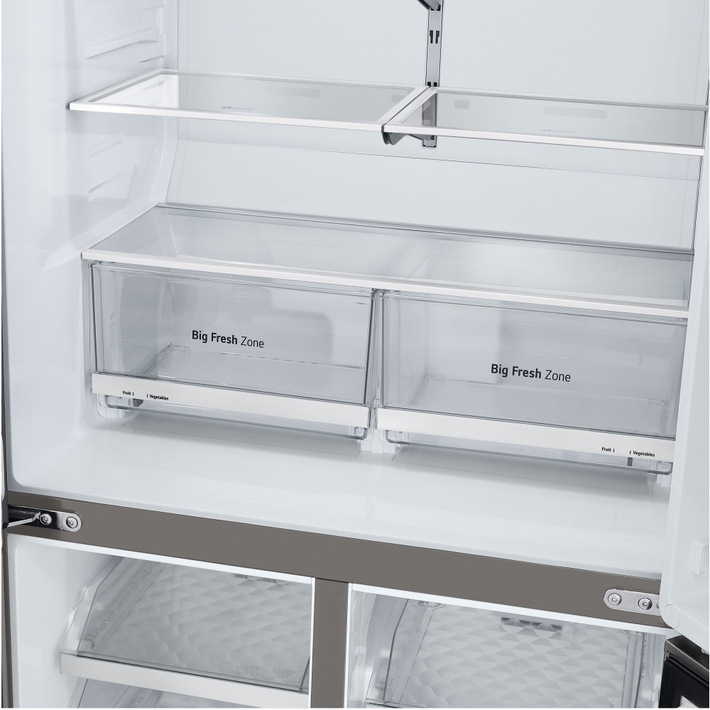 This energy efficient multi door fridge freezer Prime Silver balances functionality and sustainability. Rated E for energy, it consumes just 359 kWh annually — remarkable for an appliance of this size. The LG Inverter Linear Compressor not only operates with fewer moving parts to reduce friction and wear, but also improves overall cooling performance. Combined with temperature zone learning, your fridge automatically reduces energy usage during low-demand times, saving both electricity and money over time.
