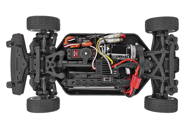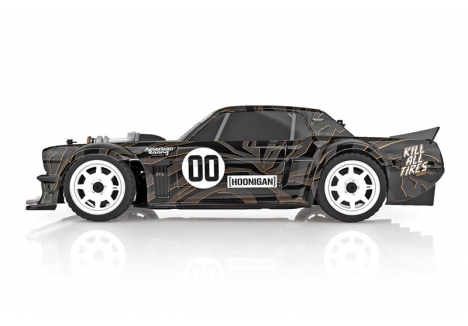 The Reflex 14R chassis has been updated from our previous version with the latest features in on-road racing. Sealed front and rear gear differentials, a molded tub chassis with covered center driveshaft, and adjustable shock positions--these extra features make it a perfect platform for the Hoonicorn's tire-slaying action!