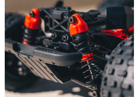 - Oil-filled shocks – smooth suspension for stable handling over rough terrain