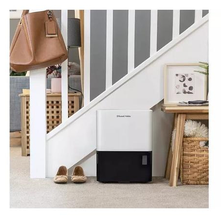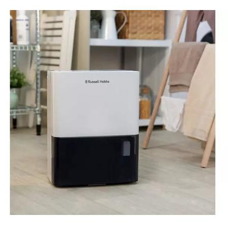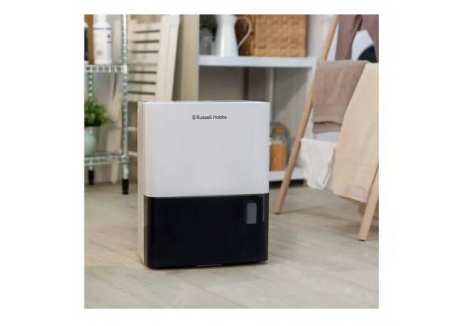 Russell Hobbs black & white dehumidifier with auto defrost and restart: dependable in changeable conditions