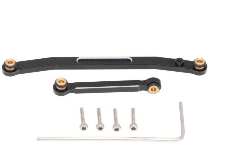 Sharpen up your steering response with these replacememt aluminium steering links. Anodized black with some cool looking silver machined edging.