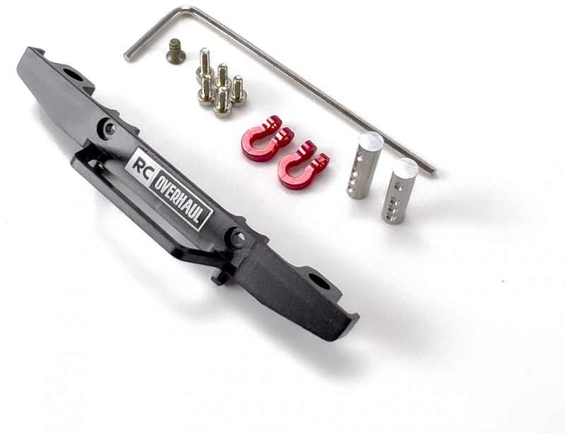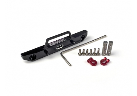 This machine aluminium front bumper for the SCX24 platform adds a touch of quality and luxury over the standard moulded version for anyone looking to personalize their micro rigs. The intricately machined D Shackles are anodised red making them a detail that stands out and adds an element of realism to any SCX24 platform. The lights are a direct fit into the bumper and simply push to fit into place. Everything you need to fit this beautifully crafted bumper is in the bag including a small Allen key needed for the screws used to bolt the accessories/mount to the bumper.