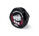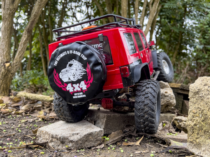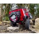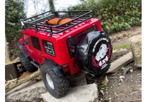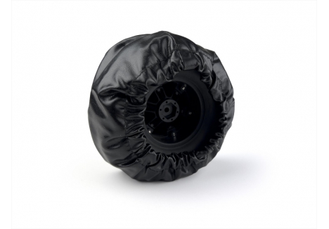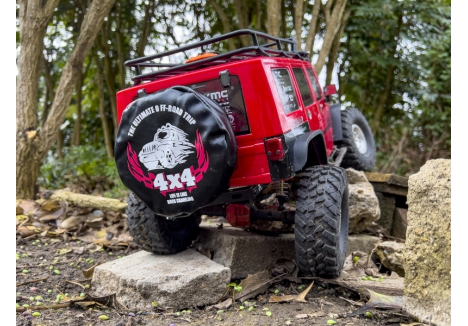This spare wheel cover is made from a faux leather material and is screen printed with a two tone design that is bound to speak to all manner of off road enthusiasts. With an elasticated opening on the back side, it can stretch to fit around a multitude of 1/10th scale sized wheels adding a touch of realism to your off road vehicle.