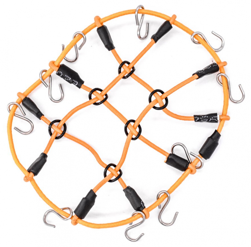 Secure your load with this cool looking bungee net. Will cover half a load on you 1/10th or your full load on your 1/24 scale. Make it stand out with this orange version