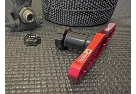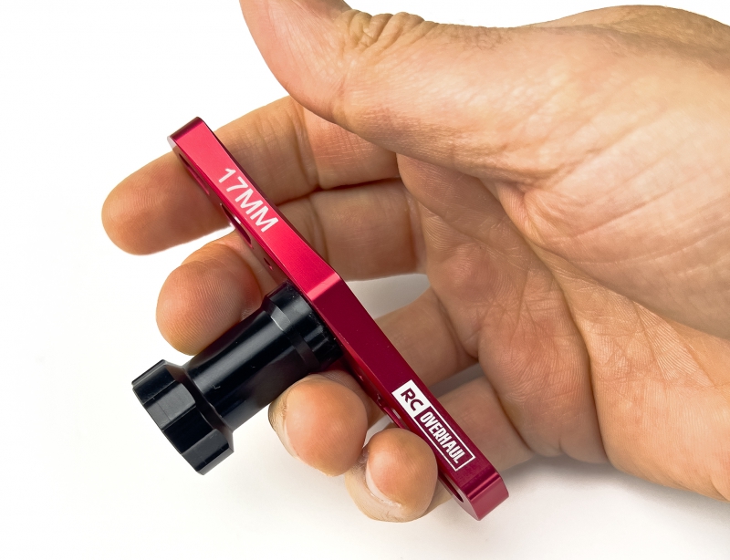 Beautifully machined from aluminium it is a lightweight tool that has the handle anodized red and the shank black that makes it durable and aesthetically pleasing. Erogonomic to use it fits nicely into your hand and the handle shape offers plenty of leverage to tighten or loosen those wheel nuts. Finally the wrench is finished off with the 'RC Overhaul' logo that adds a smart small detail to the part.