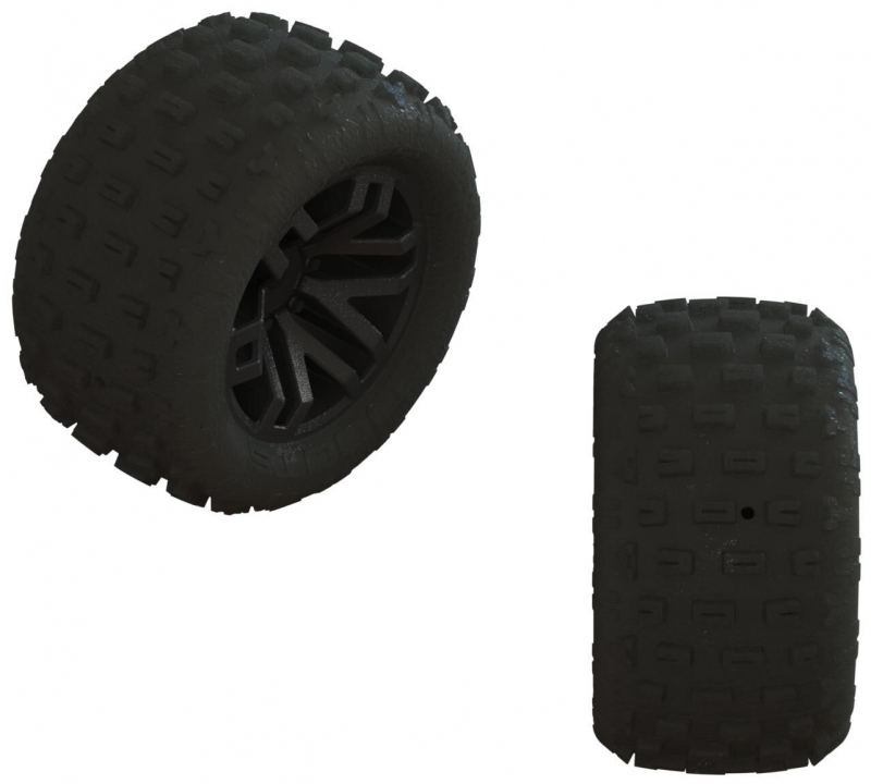 These high-quality dBoots Fortress MT tires, mounted on ARRMA wheels, are direct replacements for your kit items.