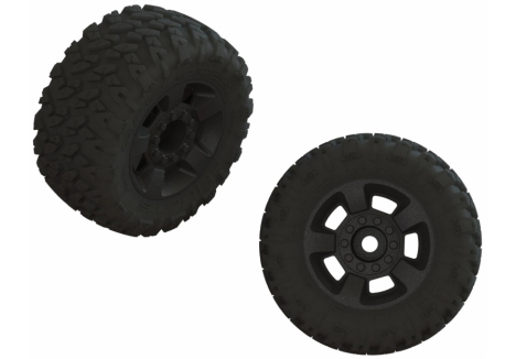 The ARRMA C-ARA7612T1 brushless monster truck is equipped with dBoots RAGNAROK™ V2 tyres mounted on five-spoke wheels. These vented tyres feature a tough off-road tread pattern that grips loose surfaces and maintains directional control at high speeds. The venting reduces ballooning, ensuring a flatter contact patch and more predictable handling. Whether you're racing across gravel, grass, or packed dirt, the tyres provide the traction needed to unleash the full potential of the 2050Kv motor. Their aggressive styling complements the truck’s rugged crew cab body, reinforcing the ARRMA brand’s reputation for scale realism and performance.