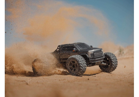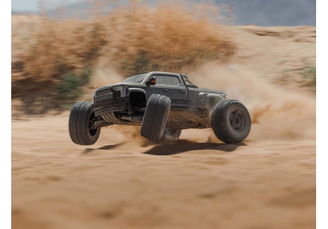 The ARRMA C-ARA7612T1 brushless monster truck is a 1/7 scale electric RC car built for extreme terrain, high-speed bashing, and rugged durability. Engineered on the proven 6S BLX platform and powered by a Spektrum Smart 2050Kv brushless motor, this 4WD off-road truck delivers explosive acceleration and a top speed of 65+ mph with the optional speed pinion installed. From its stealth-black aluminium chassis to its clipless crew cab body and RAGNAROK™ V2 tyres, the ARRMA C-ARA7612T1 4WD off-road truck combines aggressive styling with race-grade performance. Whether you're tearing through dirt lots or launching off rocky trails, this monster truck is ready to dominate.